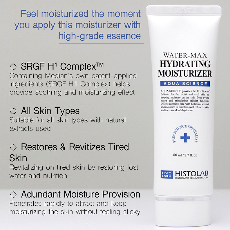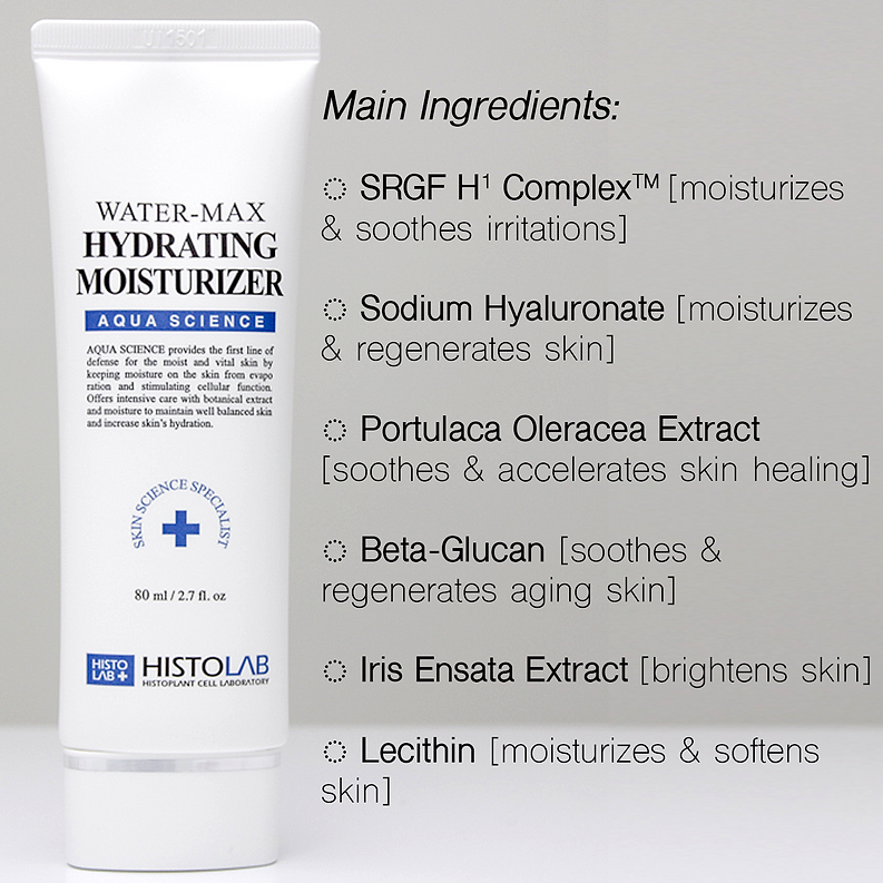 Water Max Hydrating Moisturizer- a specialized solution for rejuvenating damaged skin. Infused with powerful ingredients like HISTO plant stem cell and Portulaca Oleracea Extract, this moisturizer deeply hydrates and improves the overall condition of the skin. Designed for all skin types, it is particularly beneficial for dry skin in need of replenishment.